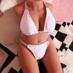 A sex doll with a torso featuring breasts and a vagina
